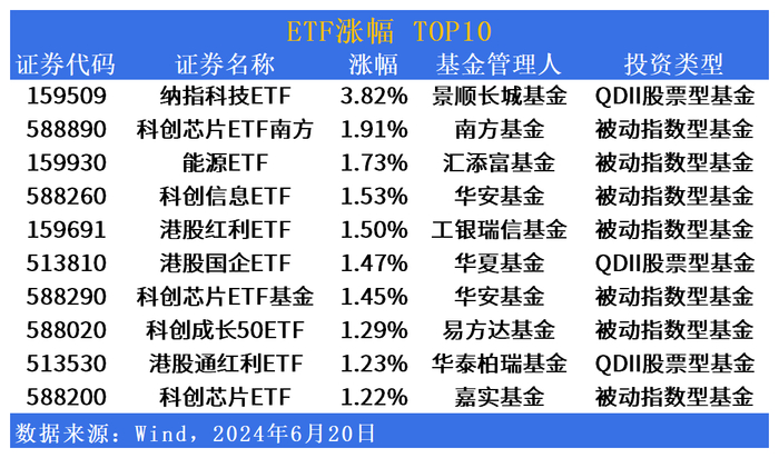 具体来看,纳指科技ETF(159509)领涨达3.82%。科创芯片ETF南方(588890)、科创信息ETF(588260)、科创芯片ETF基金(588290)、科创成长50ETF(588020)、科创芯片ETF(588200)跟涨。