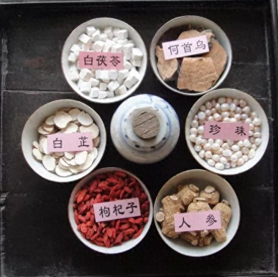 黄氏玉容丸主要由人参、阿胶、茯苓、枸杞、珍珠、白芷等多种药食同源佳品组成。具体制作流程是将珍珠与豆腐渣混合,在铜锅内煮沸半小时,用清水淘洗滤尽渣皮,将珍珠晾干,用铜冲捣杵成粗粉。枸杞等在铜锅内焙干,以不焦不粘易碎为佳。将上述等物混匀,在碾槽中研磨,过筛成粉末,于竹匾内洒水泛丸,隔筛制成黄豆大小的丸粒,干燥后瓷瓶分装。