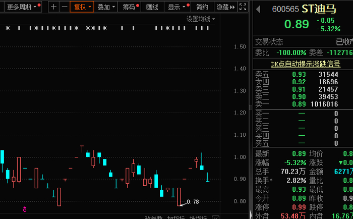 虽然公司推出一系列的保壳措施,但ST迪马今日仍收于跌停板,收盘股价报0.89元/股,收盘跌停封单超101万手,已连续19个交易日股价低于1元/股,即使明日5%的涨停板,ST迪马股价仍无法收于1元/股之上,意味着公司将被面值退市。截至一季度末,公司仍有股东8.2万户。