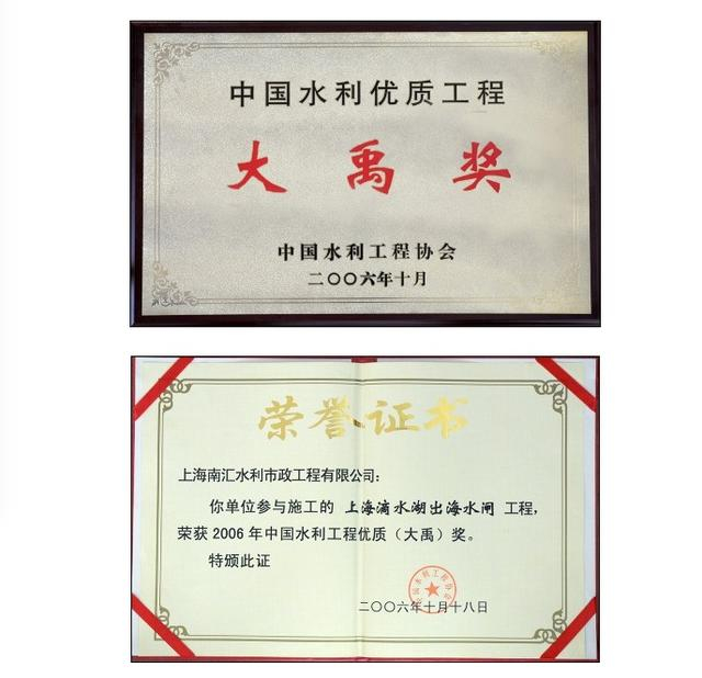 滴水湖出海闸外型设计新颖,似一座远航归来的海轮停泊港湾,通体采用钢结构,红与黄的配色在四周河水的映衬下显得十分夺目。2006年,滴水湖出海闸荣获中国水利工程优质(大禹)奖,这是我国水利工程行业的最高奖项,在上海水利史尚属首次。