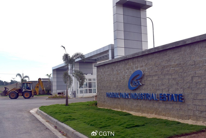 File photo shows the main entrance of a factory in the modern Phoenix Park Industrial Estate, built by the Chinese company Beijing Construction Engineering Group (BCEG), in Trinidad and Tobago. /Xinhua