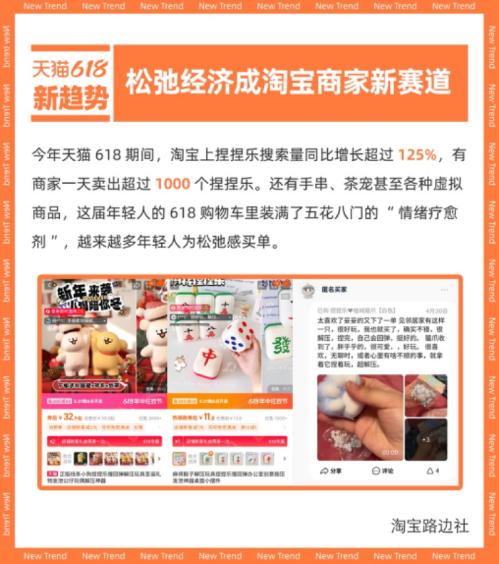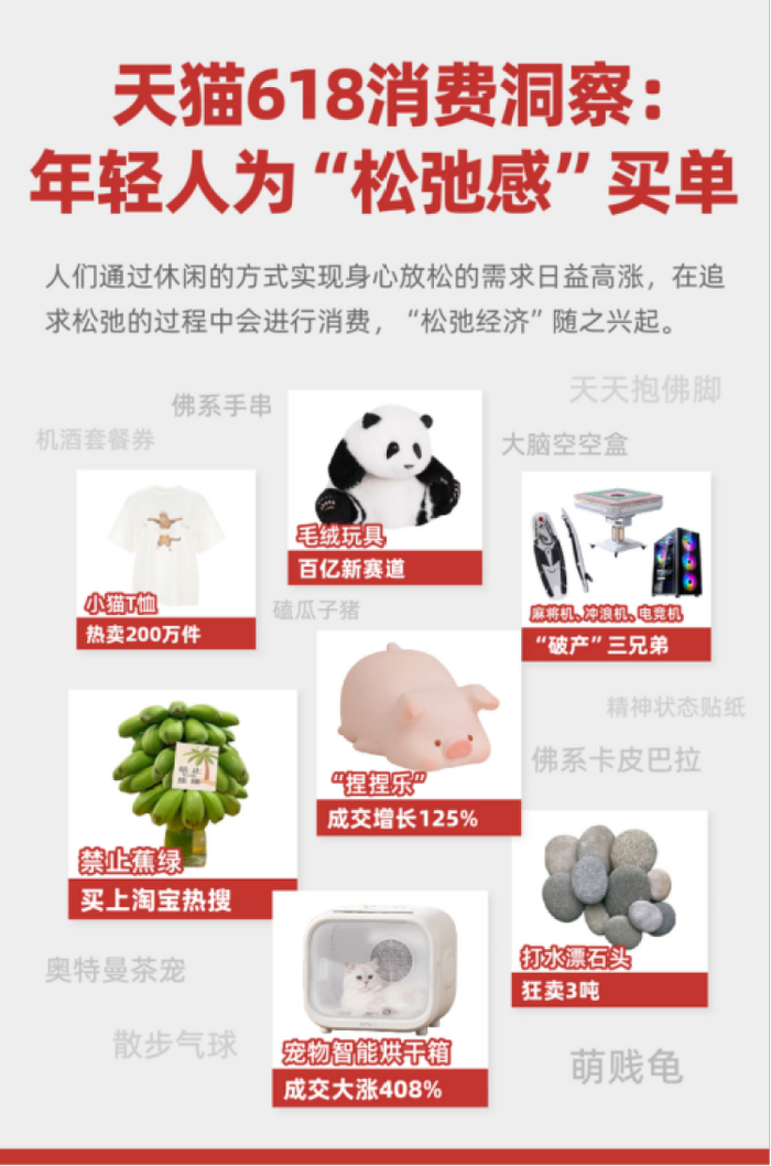 捏捏乐、佛系手串、打水漂石头、“禁止蕉绿”摆件、“去班味”T恤、成人毛绒玩具……这届年轻人的618购物车里装满了五花八门的“情绪松弛剂”。这些看似无用却能缓解压力的小东西,带动“松弛经济”大爆发,成为商家增长的新机会。
