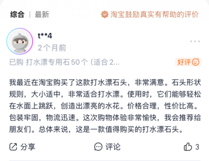 还有建材商家,在618成功转型,卖出了3吨打水漂石头,包括但不限于加工过的砖头、加工过的大理石、河边捡的鹅卵石等。据店长吴先生介绍,下单的消费者有带孩子打水漂的爸爸妈妈,也有爱玩的年轻人,钓鱼、露营、徒步的时候增加乐趣。