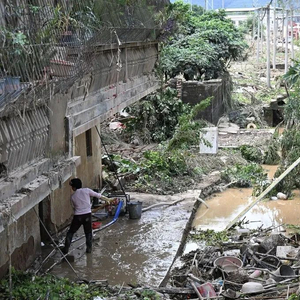 ▲2024年6月19日,广东省梅州市蕉岭县福岭村的村民在清理淤泥。图源IC photo