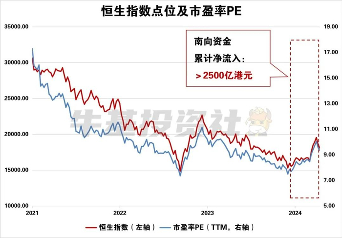 随着2月CPI超预期引发市场积极反应,推动消费板块领涨,自2024年1月31日至今,南向资金累计净流入超2500亿港元。南向资金持续流入支撑港股做多情绪,风险偏好逐渐修复,港股行情回暖。