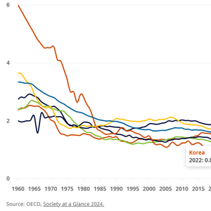 当地时间周四(6月20日),经济合作与发展组织(OECD)公布了一项研究:该组织38个成员国的总和生育率(TFR)于2022年跌至1.5,较1960年的3.3减少超过一半,创下历史新低。