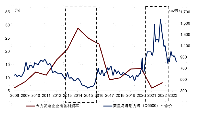 图表9:煤炭价格与火力发电企业利润背离的现象