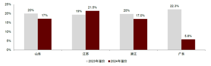 从当前的交易结果来看,容量电价改革后,交易电价不升反降反映供需预期。2021年后企业端的电力市场化改革已经推进得较为充分,计入容量电价后的综合电价水平仍由供需决定。根据中金公用事业组的研究从2024年以来的交易结果来看,由于存在来水持续修复、水电出力增加预期,且煤价在2023年出现较大幅度的下降,对电力需求整体表现预期中性或部分省份偏保守,因此电力企业2024年年度电量电价+容量电价合计在煤电标杆上网电价,溢价幅度约为17-18%,较2023年的20%溢价幅度略有下行。