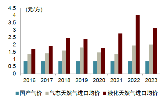 我国天然气市场化改革的思路是“管住中间、放开两头”,对中游自然垄断属性强的管网输配环节价格进行强监管,成立国家管网公司,以成本加成的方式进行政府定价;对于上游气源生产及下游用户零售环节,鼓励多市场主体竞争。但上下游仍存在两个双轨制,即气源端的管制气价(如国产陆上常规气和2014年前进口PNG)低于非管制气价(如2015年后进口的PNG和国产非常规气),用户端的居民气价低于非居民气价。用户端的价格双轨制主要通过在气源上优先给居民分配低价管制气源、顺价更严来压低居民气价,如顺价启动条件更严(建立价格联动机制需开听证会)、周期更长(居民约1年,非居民约3-6个月)、存在上限(居民门站价上限为基准门站价上浮20%,非居民为双边协商[18]),相当于工商业用户对居民用户的横向交叉补贴。同时,即便上游管制气或自采非管制气涨价,下游城燃企业向终端居民的顺价可能不畅,还可能存在城燃企业对居民用户的纵向补贴[19]。而当城燃企业利润受损较严重时可能导致断供风险,如2022年冬季受俄乌冲突等因素影响,部分“煤改气”大省出现气荒,2023年冬季为防止再度气荒,多地政府与城燃公司签订保供协议,对城燃购销气价的“倒挂”部分进行补贴[20]。