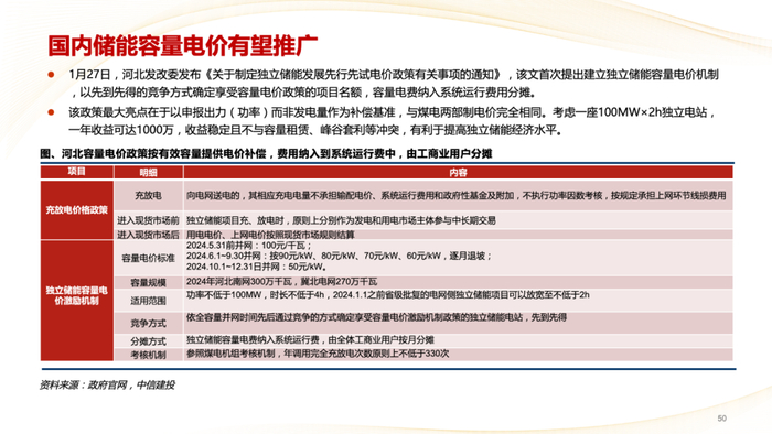 3)政策方面:储能相关扶持政策不及预期;容量电价补偿标准低于预期;电力现货市场推进进度不及预期;电力峰谷价差不及预期。