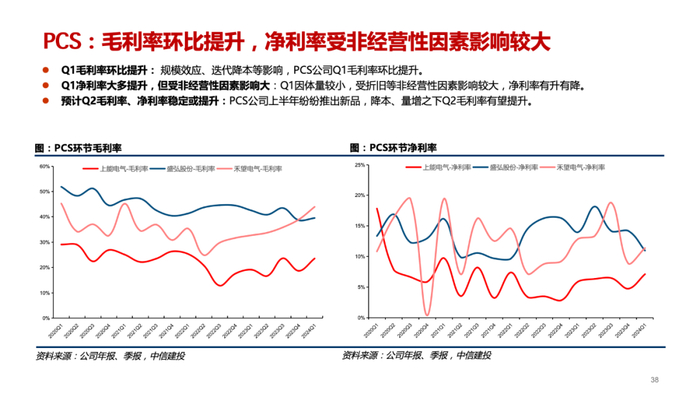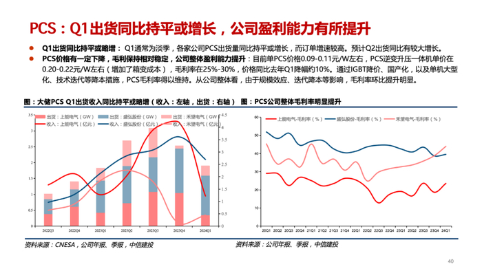 PCS(大储):国内招中标保持旺盛,630并网节点之际,Q2出货环比提升明显,构网型技术趋势之下量增趋势有望超预期。Q1单价有一定下降,Q2较为稳定,IGBT等元器件降价明显,新品推出亦起到降本作用,毛利率维持稳定。