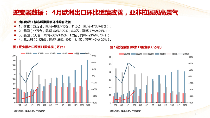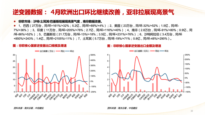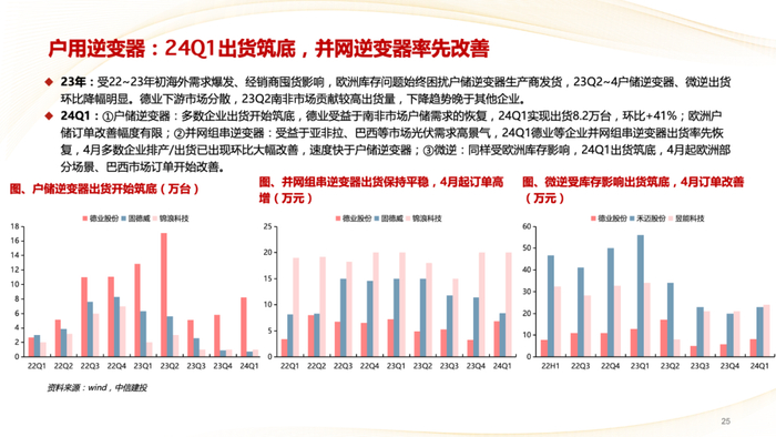 逆变器(户储):Q1逆变器出货筑底明确,并网逆变器已率先改善,海外仍有一定库存。Q2并网逆变器出货进一步改善,储能逆变器在亚非拉市场增长迅速。
