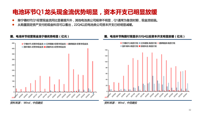 电池(大储):碳酸锂现货价格短暂上涨到11万元/t后重新降至10万元/t水平。磷酸铁锂方形电芯含税价近期已稳定在0.37元/Wh左右,但此前库存的280Ah电芯抛售导致实际成交价可能低于此水平,预计库存清空以及行业向314Ah切换有望扭转降价趋势。Q2在出货增长、稼动率提升下电池单Wh盈利有望底部修复。