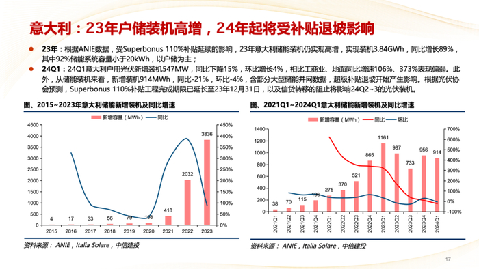 意大利:24Q1新增装机914MWh,同比-21%,环比-4%,含部分大型储能并网数据,超级补贴退坡开始产生影响。