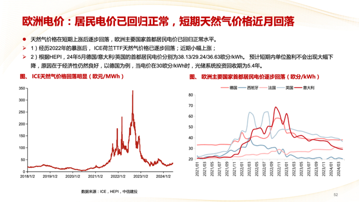 海外电价:欧洲现货电价2024年以来在80欧元/MWh左右波动向下。2024年4月德国首都居民用电价格约38欧分/kWh,基本消除俄乌战争以来的影响。