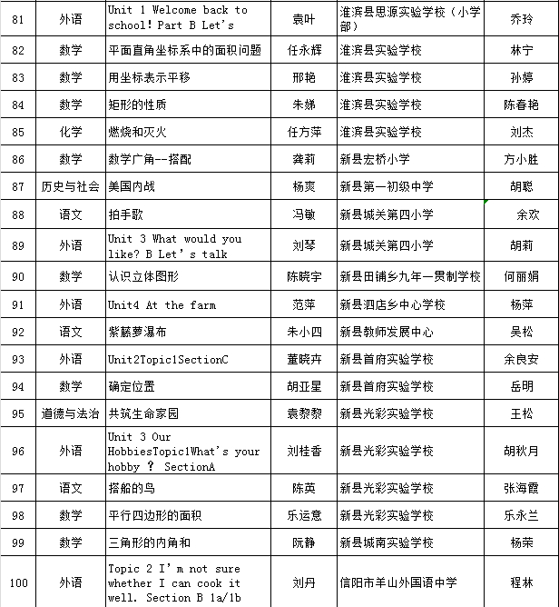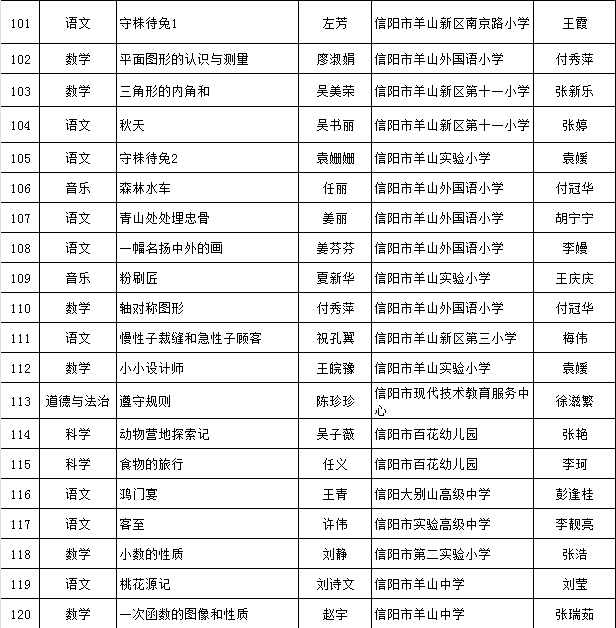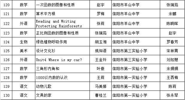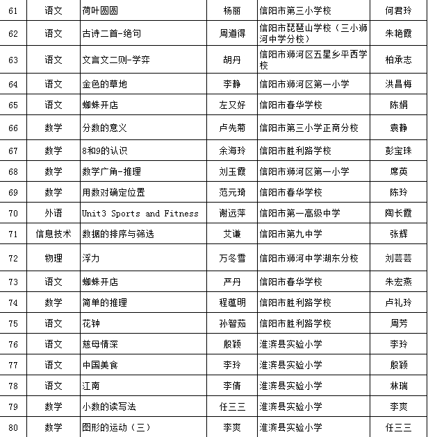 根据《信阳市现代技术教育服务中心关于开展2024年度信息技术与课程融合优质课评选活动的通知》(信教服〔2024〕11号)精神,经逐级评选,拟推荐简真丽等130人参加省级评选,现予公示。