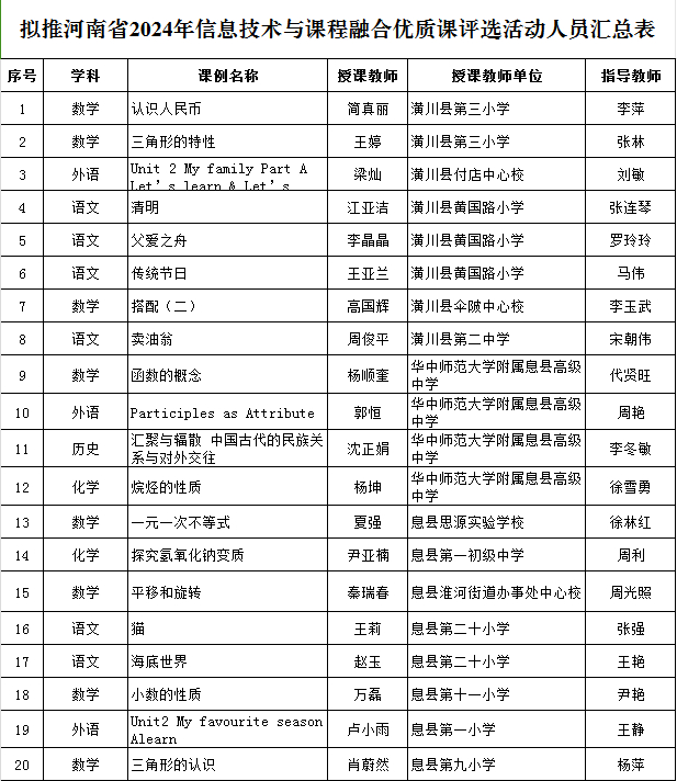 关于2024年河南省信息技术与课程融合优质课评选活动推荐人员的公示