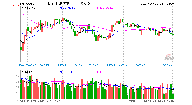 科创新材料ETF(588010)跌0.60%,半日成交额452.54万元