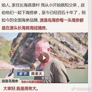 记者看到,在百度的广告中多次表示渔民周老大是“浪渔岛海参”品牌的创始人。