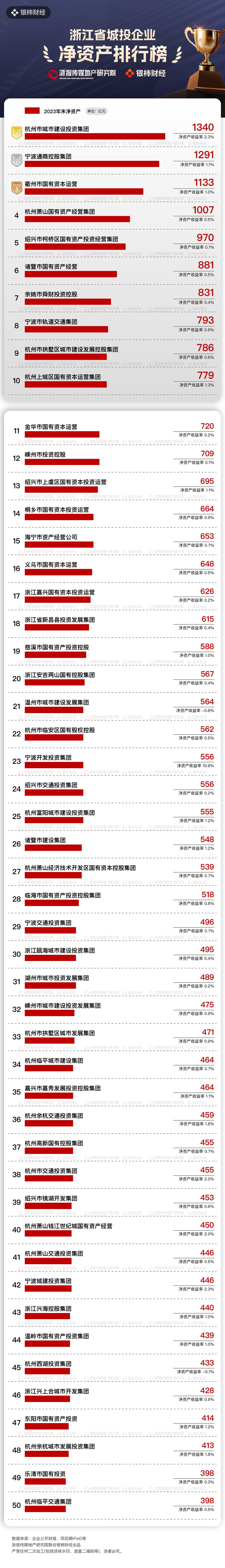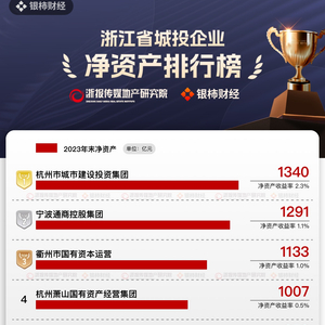 浙江省城投企业净资产TOP50榜单公布,千亿“俱乐部”扩容至4家