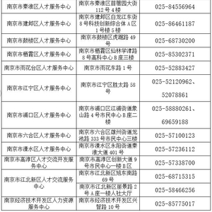 下表为南京市及各区人才服务中心服务地址和电话。档案在这些人才服务机构保管的,可用手机下载“江苏智慧人社”App,搜索“档案查询”功能进行档案查询,也可在线申请开具档案相关证明、办理档案转出等业务。或用电脑登录江苏省人力资源和社会保障厅官网或关注南京市人才服务中心微信公众号,查询档案、办理业务。