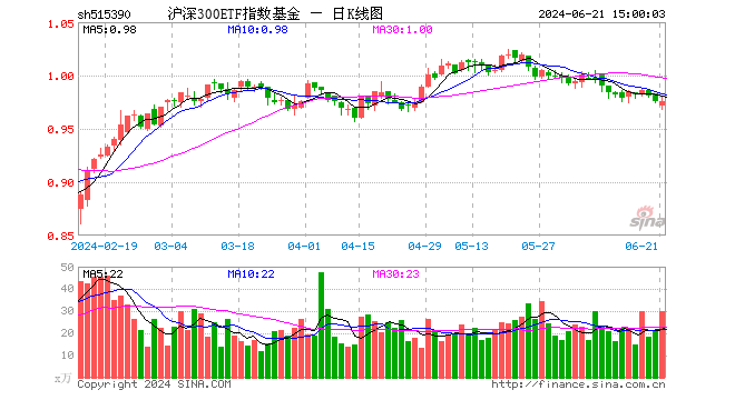 6月21日,华安沪深300ETF(515390)收盘跌0.10%,成交额2931.32万元。