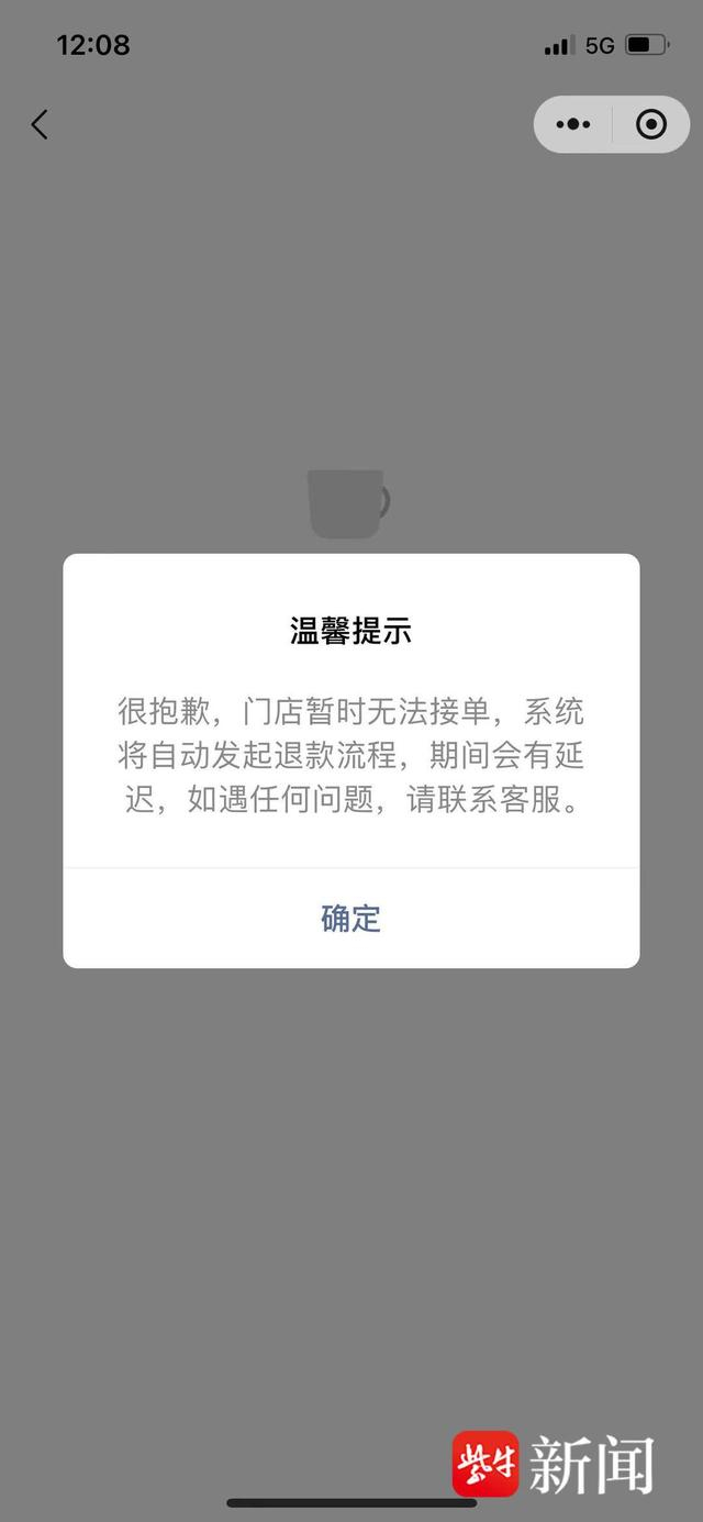 随着记者按照店员指引,通过手机扫码下单。但即使打开了定位,手机扫码依然无法锁定店铺,需要手动选择下单的店铺。进入点单页面后,店铺首推的是“冰葡汤力美式(含赠品)”和“冰葡汤力美式(不含赠品)”,价格均为20元。其中不含赠品的显示已经售空。记者下单了“冰葡汤力美式(含赠品)”,付款20元不久后,系统提示“很抱歉,门店暂时无法接单,系统将自动发起退款流程……”记者就此事咨询门店工作人员,对方称,“现在下单量大,你多试几次。”之后记者再次尝试,发现“冰葡汤力美式(含赠品)”显示售空。