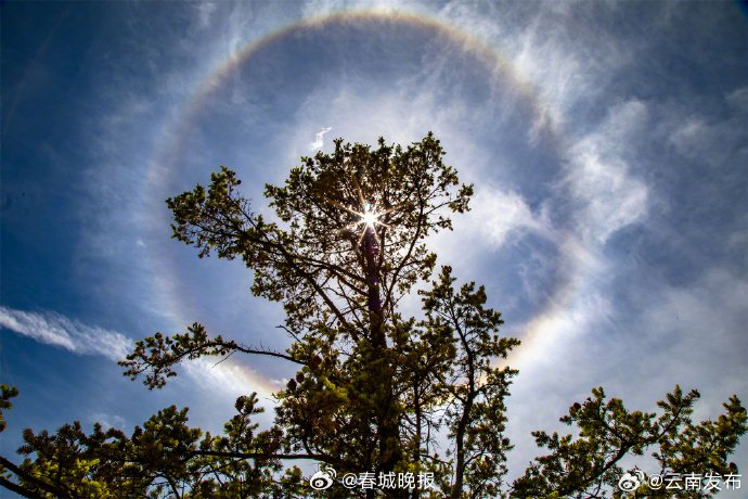 近日,曲靖市会泽县上空出现日晕光学现象。耀眼的太阳被一道色彩艳丽的光圈环绕,如同戴上了绚丽迷人的“美瞳”,耀眼又壮观。日晕多出现于春夏季节,温馨提醒:观看日晕景观时,尽量避免长时间直视太阳。你拍到美丽的日晕了吗?愿所有美好都如约而至!(云南发布 曲靖市委宣传部 会泽县融媒体中心)