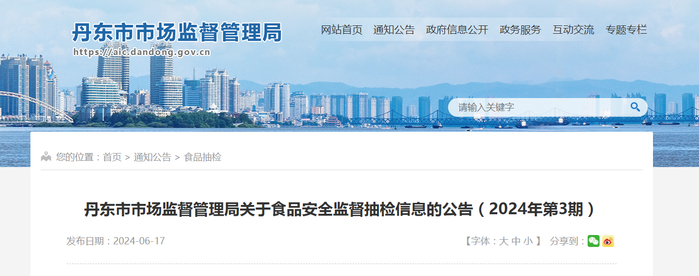 【辽宁省】丹东市市场监督管理局关于食品安全监督抽检信息的公告(2024年第3期)