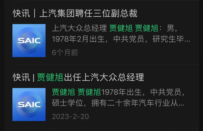 另一位,现任上海汽车集团股份有限公司副总裁贾健旭,亦将拟任市管企业正职。