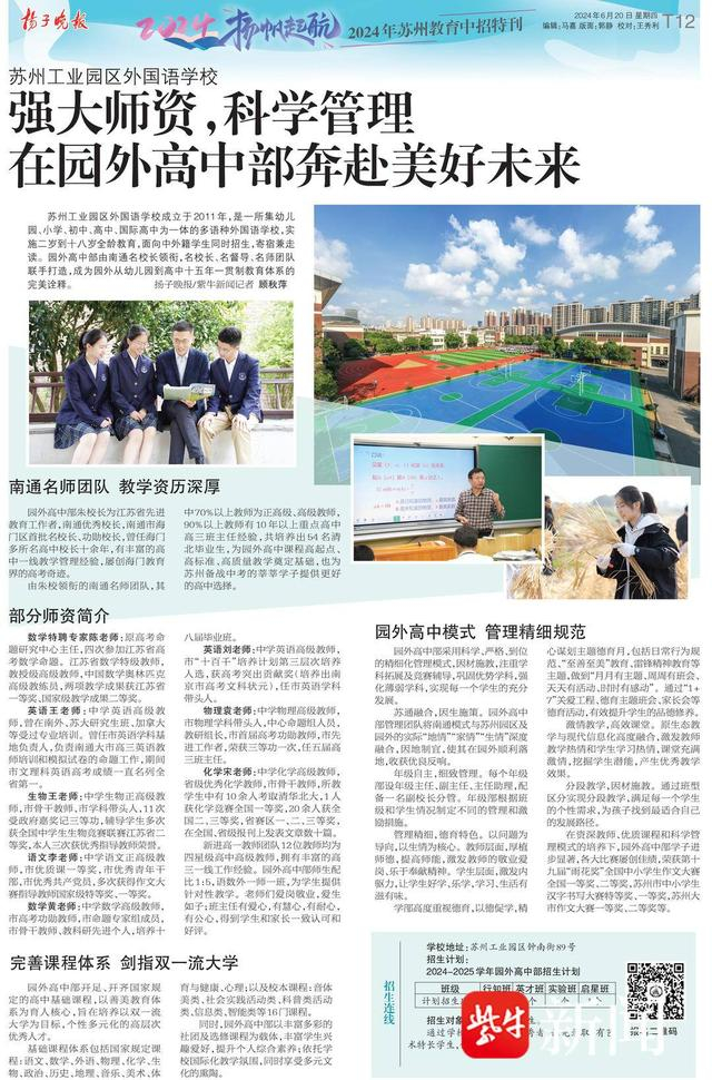 苏州工业园区外国语学校:强大师资,科学管理,在园外高中部奔赴美好未来