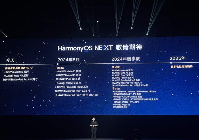 余承东透露,HarmonyOS NEXT预计在2024年第四季度正式商用。随着 Mate70系列的上市,鸿蒙衍生一个他们又时代出来,真正走向大规模商用,届时华为已经推出的系列化机型,也会一起搭载鸿蒙原生生态,2025年明年将有更多机型全面升级和支持。