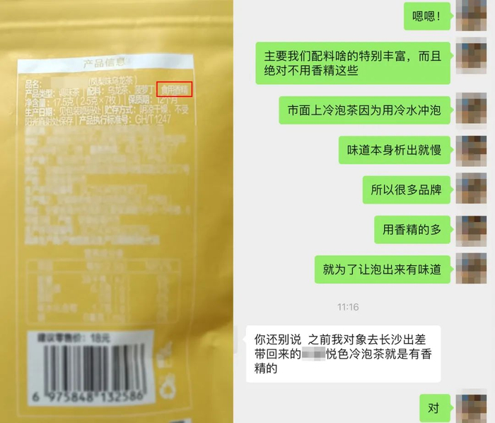 因为冷泡茶用冷水冲泡,味道析出慢,许多品牌为了让茶包快速释放香气,往里面添加了香精👇