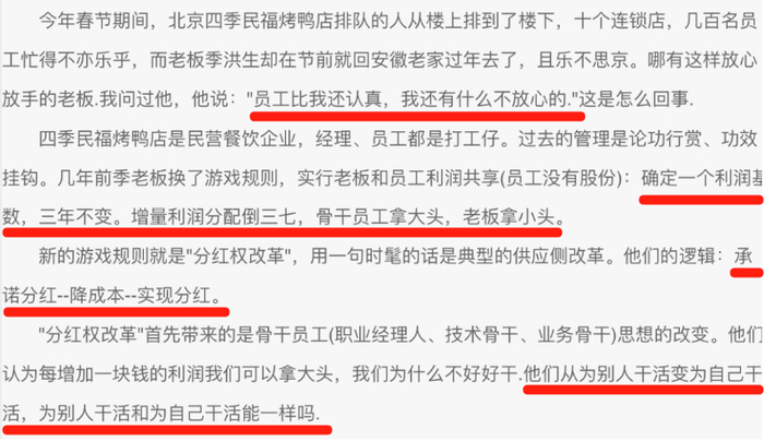 在四季民福,很早就开始了分红权改革,让员工们利润共享。在2014年时,就有6名员工收入突破百万。
