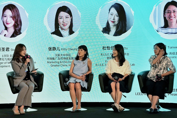 圆桌讨论环节,论坛邀请到LEED北亚区市场转化与拓展部高级经理蔡圣君、R.I.S.E.可持续创新平台创始人兼CEO杜怡佳、汉斯大中华区市场推广及可持续发展总监张静儿、Sasaki高级主管周天闻围绕“畅想绿色未来:多态、多样、多元”这一主题展开了热烈的讨论,嘉宾们从不同角度探讨了绿色发展的多元路径,分享了各自在可持续发展领域的经验和见解。