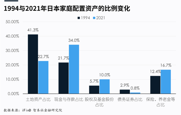 直接原因是泡沫危机冲击和央行持续降息,导致日本金融资产收益率接近清零。日本面临资产荒,家庭无资产可配,买什么都不赚钱。