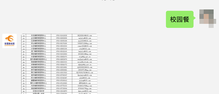 ②对话框发送“校园餐”,即可获取举报电话和邮箱。
