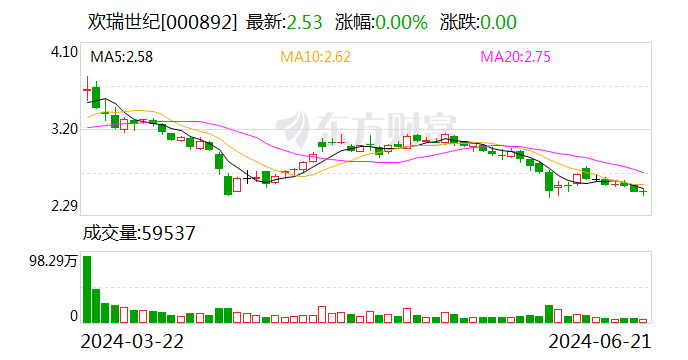 截至周五收盘,欢瑞世纪(SZ000892)报收2.53元,总市值24.82亿元。