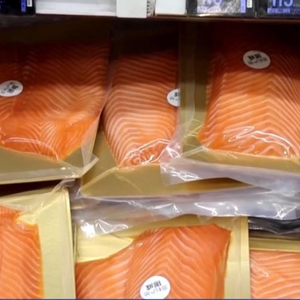 三文鱼进口商 郑先生:五月份挪威产三文鱼的价格大概是每公斤120元至130元,现在下降到每公斤90元至100元。智利产三文鱼价格从100元左右降到现在的每公斤85元、86元。