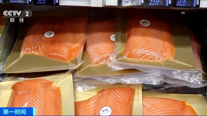 三文鱼进口商 郑先生:挪威、智利那边这段时间三文鱼集中上市,价格直接下跌。