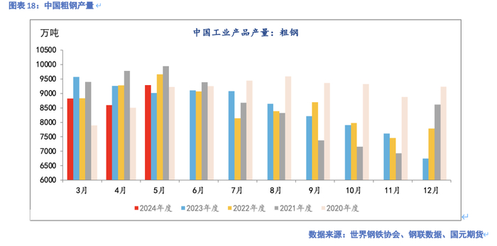 我们认为今年粗钢产量大概率同比持平,特别国债及专项债发行节奏加快,下游资金好转,下半年粗钢产量会比上半年有所增量,呈现出前高后低的供应走势。