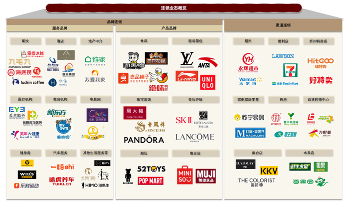 我们认为连锁业态可大致划分为服务品牌连锁、产品品牌连锁及渠道连锁三大类。