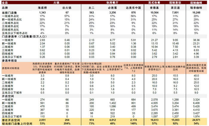 图表:主要餐饮品牌开店空间测算