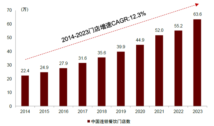 图表:2014-2023年中国连锁餐饮门店数