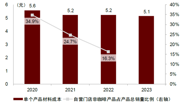 图表:瑞幸单个产品材料成本逐年降低