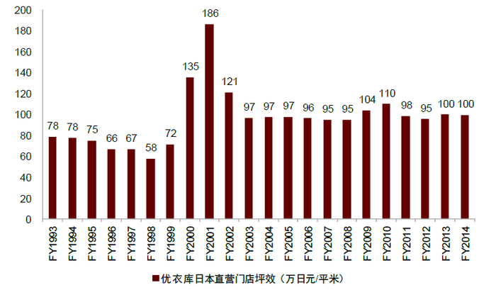 图表:优衣库日本直营门店坪效