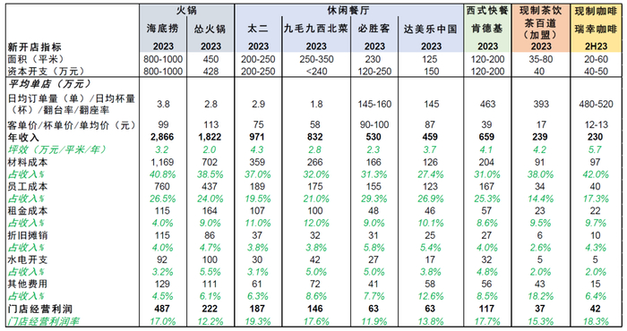 图表:主要餐饮品牌单店模型测算