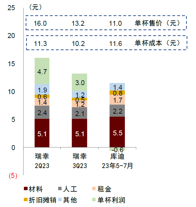 图表:瑞幸咖啡与库迪咖啡的单杯成本比较