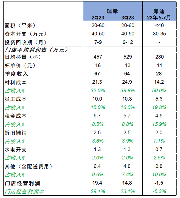 图表:瑞幸咖啡与库迪咖啡的单店模型比较