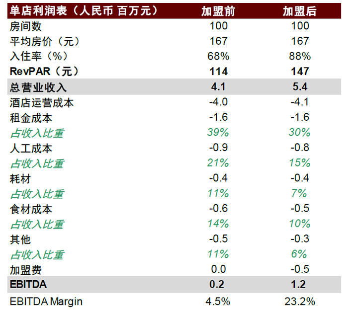图表:单体和连锁酒店的单店模型比较